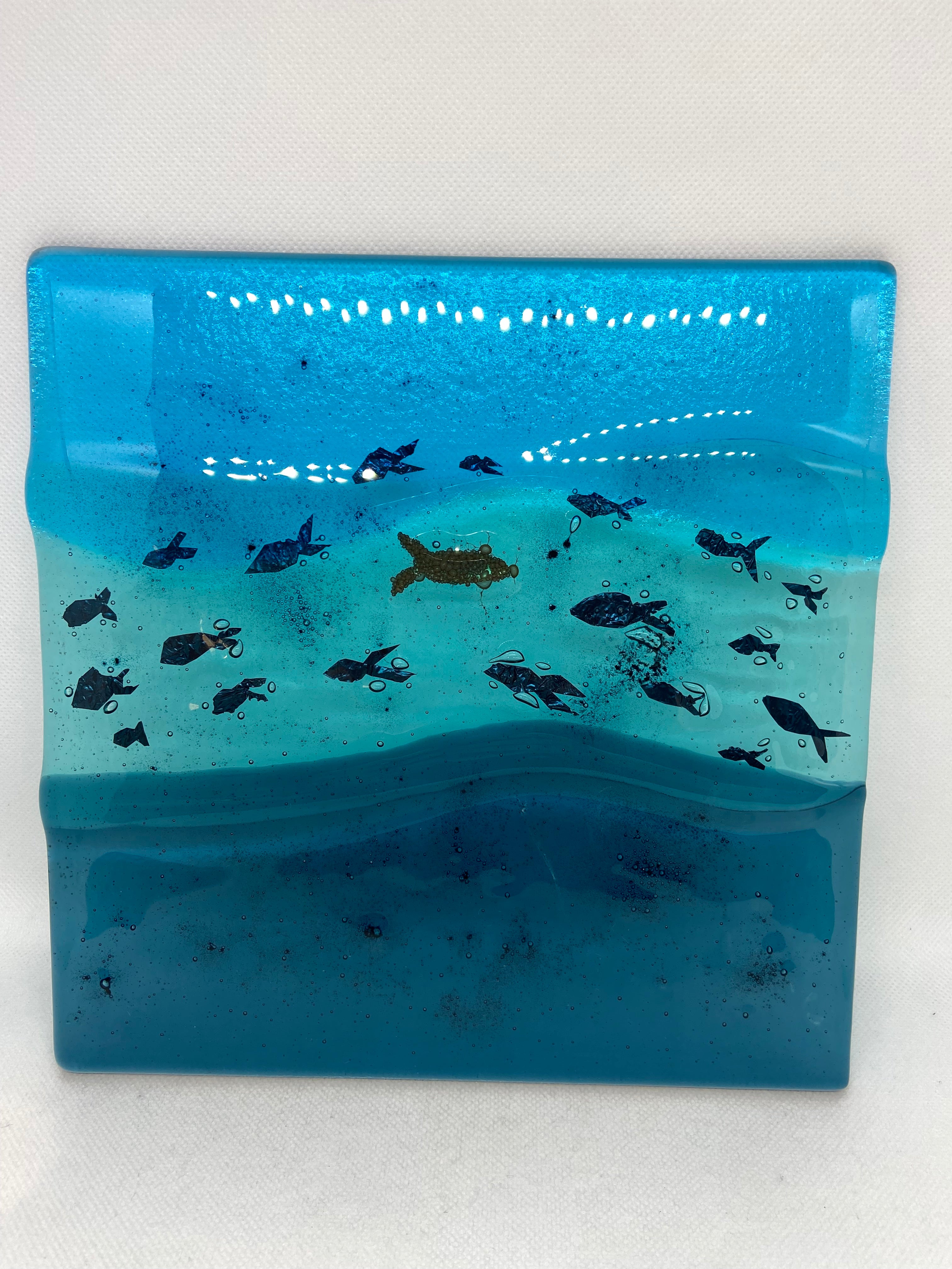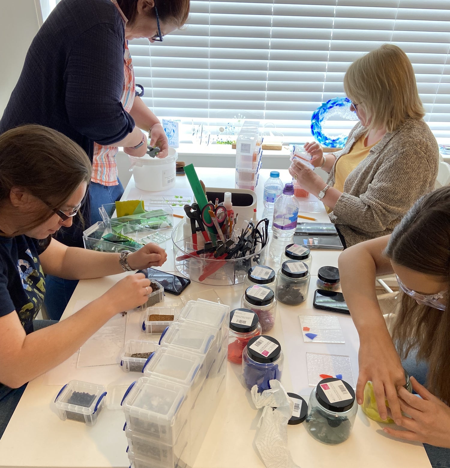- Introductory workshop. This is £40 per person and a good way to start glass fusing. You will make either two coasters or a self-standing ornament.
